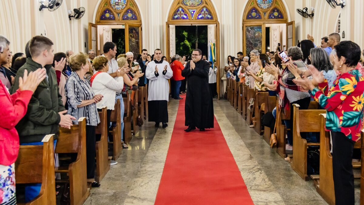 Com um sorriso encantador, Pe. Jorge Wilson Carvalho Fonseca tomou posse como pároco da Paróquia de Sant’Ana.