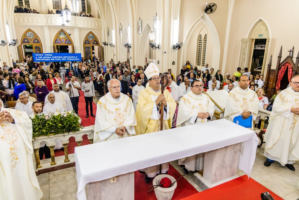 A missa solene foi presidida pela Vossa Exa. Revmo. Dom José Eudes, e contou com a presença de diversos padres e diácono; além de fiéis, familiares e amigos do Padre Jorge. Que Nossa Padroeira Sant’Ana o inspire e o fortaleça a cada dia na sua nobre missão.