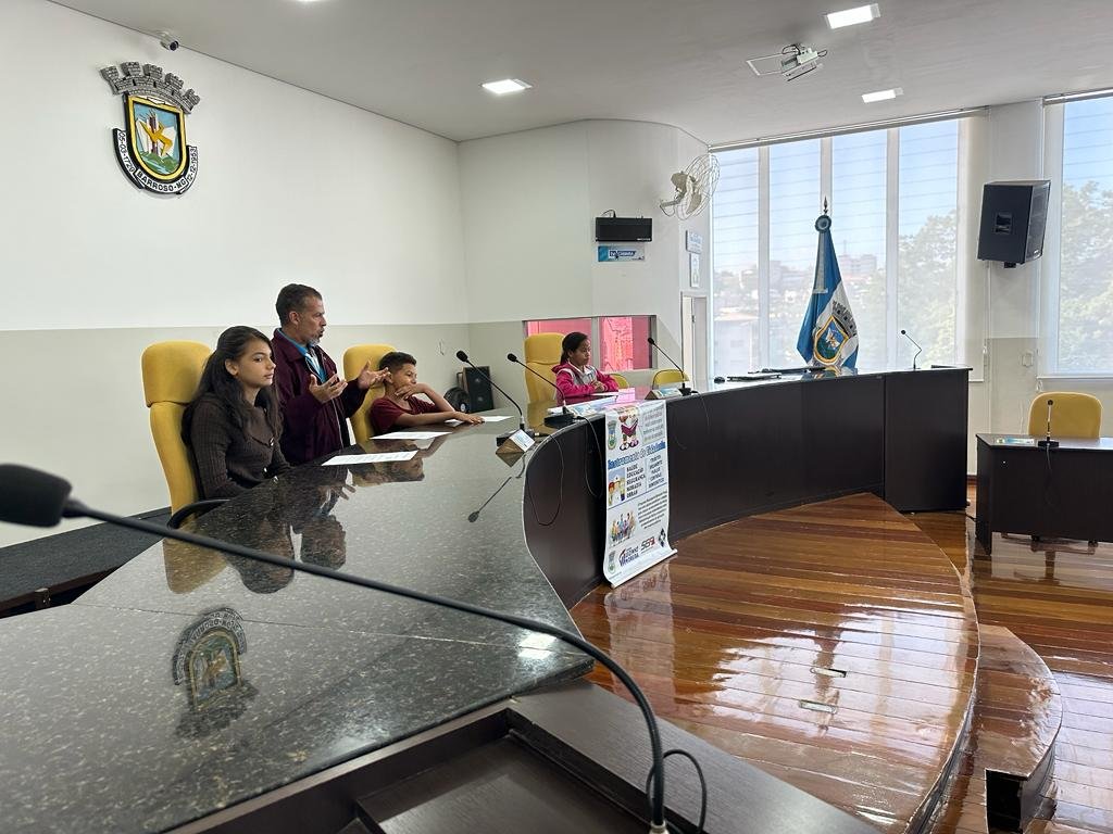 Com a colaboração do assessor geral de Plenário, Nivaldo de Oliveira, aconteceu uma simulação de uma reunião ordinária, que teve como discussão e votação de um Projeto de Lei de combate ao Bullying no ambiente escolar.