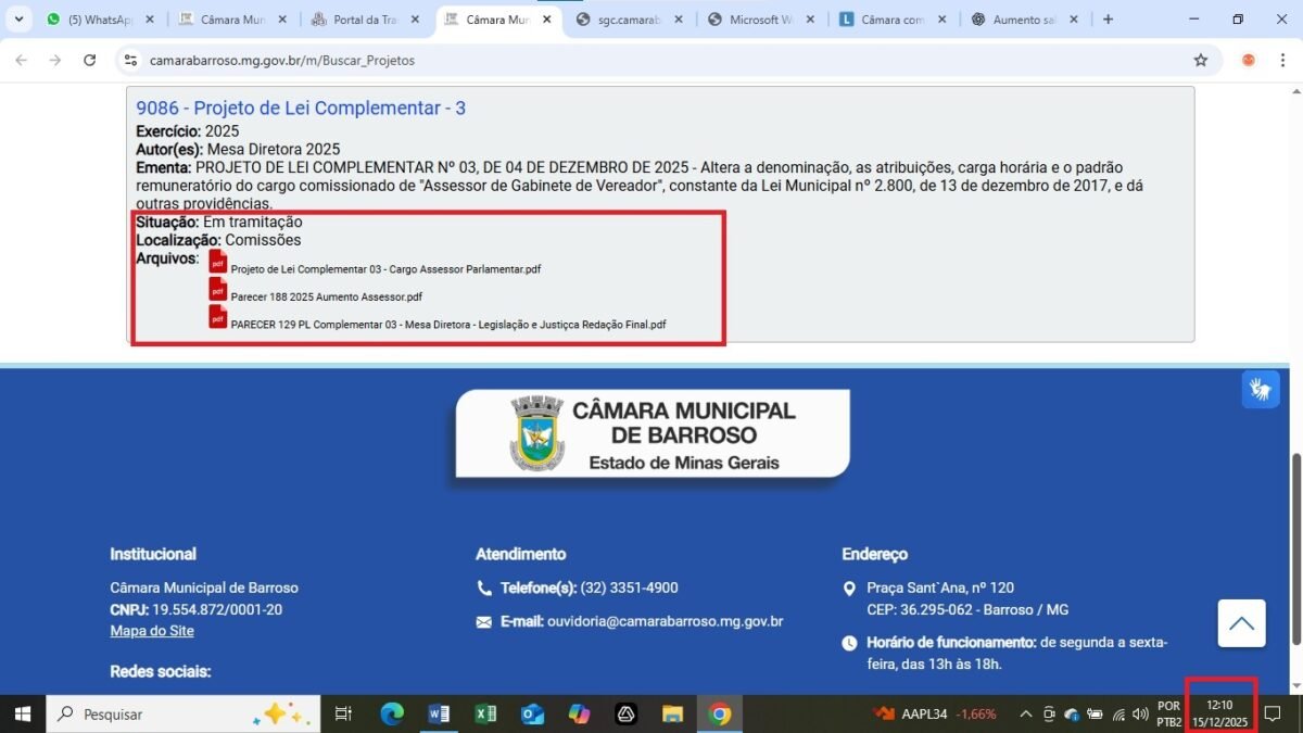 A Câmara de Barroso aprovou, no dia 11/12, o Projeto de Lei Complementar (PLC) nº 03/2025, que aumenta os salários dos assessores dos vereadores (assessores parlamentares). A votação e aprovação ocorreu normalmente, sem discussões calorosas, mas deixou muitas dúvidas no ar.